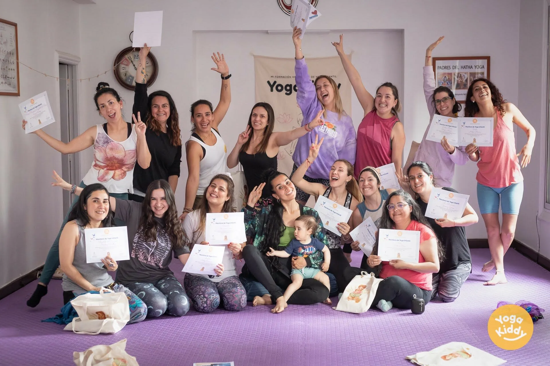 Nuestra última formación, dedicada a la enseñanza de yoga para niños, ¡fue un gran éxito! La formación de fin de semana completo, que tuvo lugar en el transcurso de 2 días (18 horas en total) en Santiago de Chile, contó con la participación de un grupo de mujeres entusiastas que estaban ansiosas por aprender acerca de las técnicas para practicar yoga con niños de una manera entretenida y atractiva.